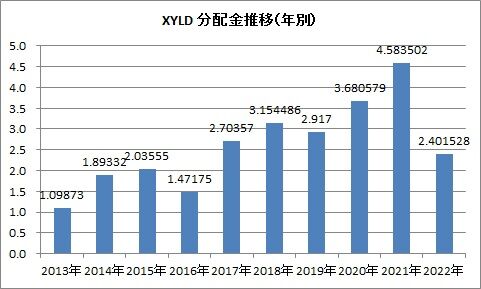 XYLD 0.4411ドル 同32.3%増 やったー('▽'*)ニパッ♪