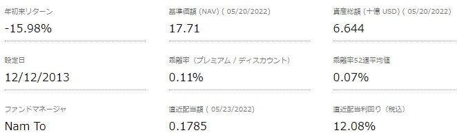資産総額は15.65億ドルとなっています。前月は14.48億ドルでしたので、こちらはわずかに資産額が増えています。こういったところが増配に影響してくるのかな?