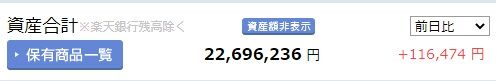 そんな中でも、不思議なもんで、私の資産評価額は前日比で+11万円と、微増しました。