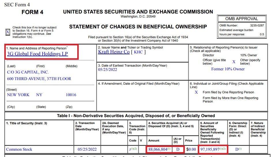 The Kraft Heinz Company Receives Notice of Partial Stock Distribution by 3G Capital
