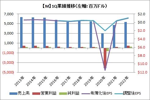 百貨店の米メーシーズ(M)が第一四半期の決算を発表しました。内容は良かったです。