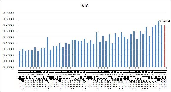 バンガード社のETFでは連続増配株式(VIG)も、個人投資家には人気ですね。今回VIGの分配金も発表されています。