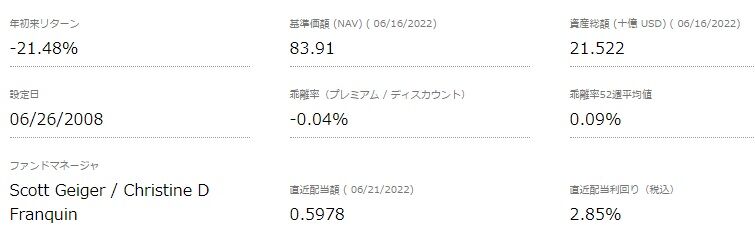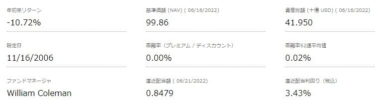 また基準価額が99ドル台まで下がってしまっていますので、(0.8479ドルが4回続いた場合の)配当利回りが、なんと3.43%まで上昇。これは驚き。高配当株式ETFの名にふさわしい利回りと増配ぶりです。