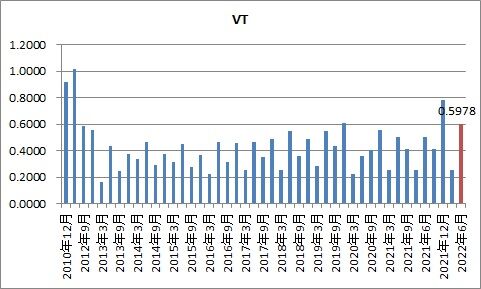 VTの6月分配金は0.5978ドルと発表さました。これは、前年同期比で18.4%増です。6月分配金の平均増配率は5.4%なので、めちゃ増やしていますね。ま、でもここは分配金額や増減率に結構バラつきが大きい銘柄です。