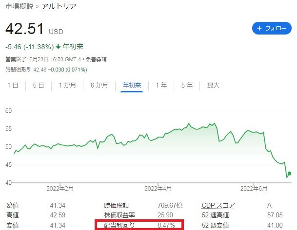 でも、こんなにアルトリアが暴落しているのでしょうか?しかも6月以降の下がりが酷い。
