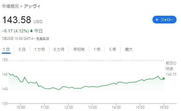 売上高は市場予想とほぼ一致したものの、一株利益が予想を下回りました。これが原因かな。
