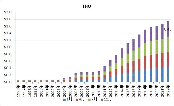 配当株の魅力は増配ですね。企業は収益を上げ、株主に利益を還元しますが、それは(基本的には)毎年増えて行くものです。