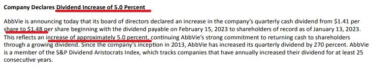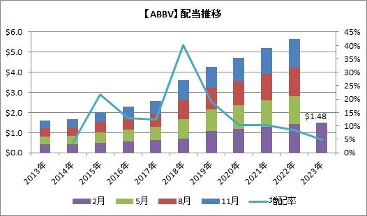 米医薬メーカーのアッヴィ(ABBV)が2023年2月以降の四半期配当を発表しました。