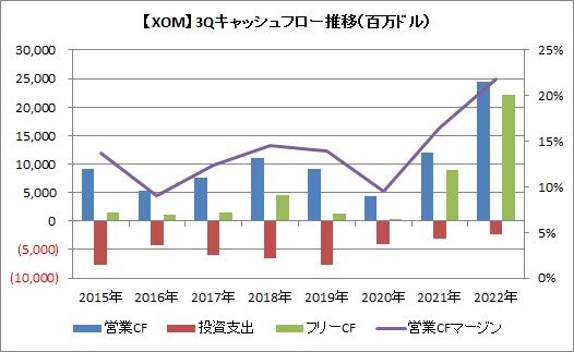 営業キャッシュフローは244.25億ドル(前年同期比102.0%増)、投資支出23.78億ドル(同22.1%減)、フリーキャッシュフローは220.47億ドル(同144.0%増)でした。