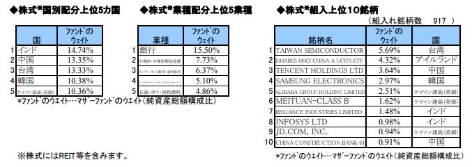 主要組入国は、インド、中国、台湾、韓国、ケイマン諸島です。詳しく見ると、東欧諸国もほんの少し入っているようです。