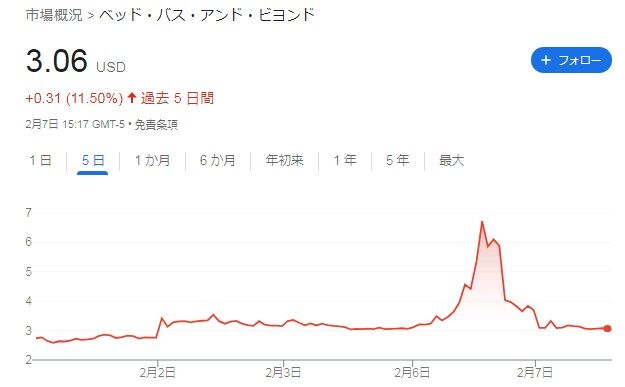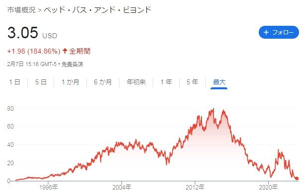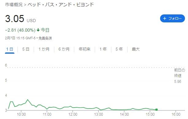 目標株価を0ドルに設定したウェドブッシュ・セキュリティーズのアナリスト、セス・バシャム氏は、たとえベッド・バスがこの取引を完了させても「新たに調達した資金では、事業を好転させるための時間がわずか2,3四半期延びるだけだ」と指摘しているようで、同社にとって厳しい状況は変わらなさそうです。