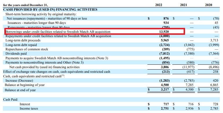 それと、決算発表の時の記事でもお伝えしましたが、スイス企業の買収に絡んで、フィリップ・モリスのバランスシートで、負債増えたと書きました。