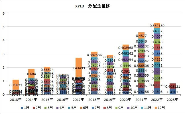 XYLDの年初来基準価額は4.11%高となっており、そんなに悪くはありませんね。