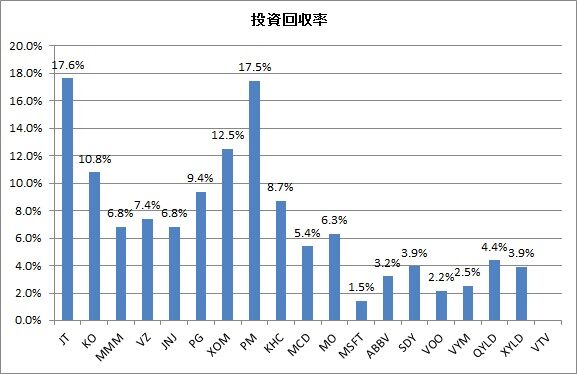 株価騰落率はこれくらいにして、次は配当による投資回収率です。