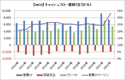 さて、そこでマクドナルドのキャッシュフローですが、2022年通期では以下のようになっていました。
