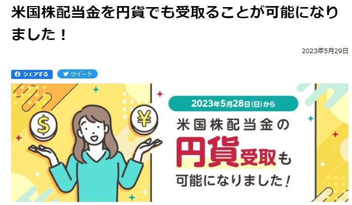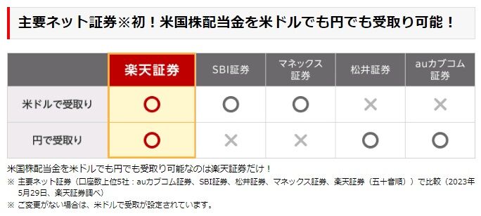 楽天証券は29日、米国株の配当金を円貨でも受け取れるようになった(5月28日から)と発表しました。
