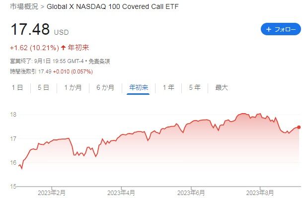 9月1日終了時点の株価は17.48ドルで、年初来株価は+10.21%となっています。今回買い付けたのは17.50ドルでした。