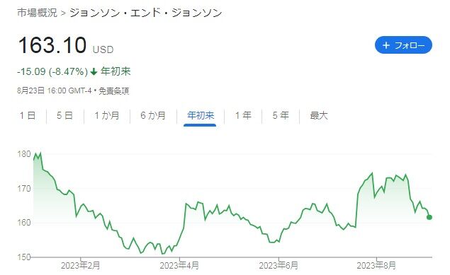 9月1日終了時点の株価は163.10ドルで、年初来株価は-8.47%となっています。今回買い付けたのは161.42ドルでした。株価はあまりパッとしませんね。。