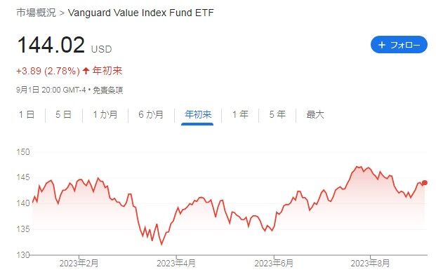9月1日終了時点の株価は144.02ドルで、年初来株価は+2.78%となっています。今回買い付けたのは144.29ドルでした。
