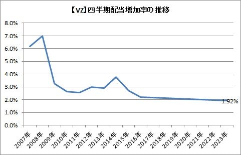 ベライゾンは連続増配17年目ですからね。しかも、2016年頃から2%ちょっとの増配ですし、2%未満の増配は昨年からですが、成長鈍化が早すぎません??