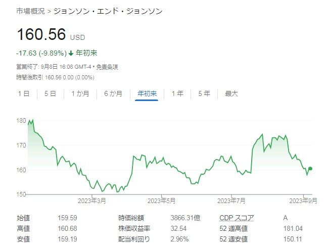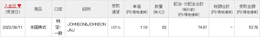 米ジョンソン&ジョンソン(JNJ)から第3四半期の配当を受け取りました。