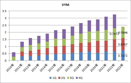 年間での増配を目指すなら、第4四半期で0.69000ドルは必要です。ただそれは前年同期比36.0%の増配が必要ですので、なかなか厳しいかもしれませんよ。22年第4四半期の分配金(0.507258ドル)は決して少なかったわけではなかったですから。