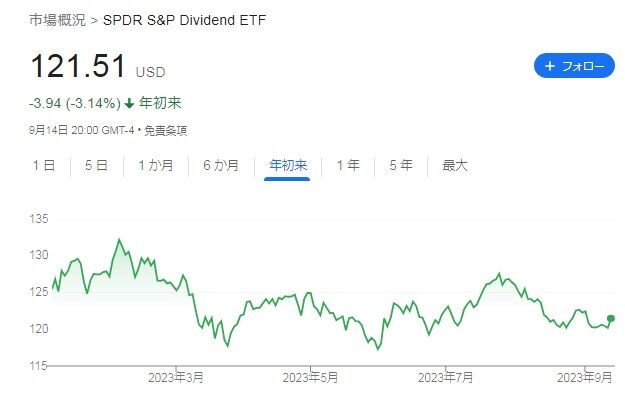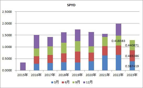 SPYDの分配金は0.440871ドルで、前年同期比5.4%増でした。