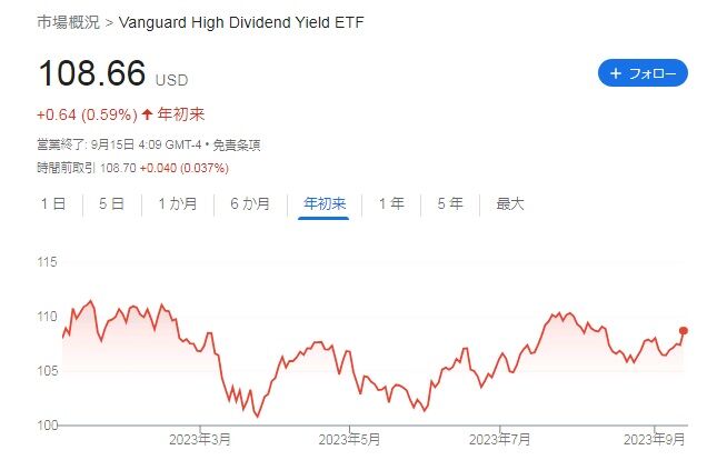 他にVXUSも分配金が発表されていまして、0.2952ドル(前年同期比5.3%増)でした。