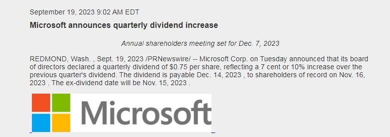 マイクロソフト(MSFT)が10%増配を発表しました!!