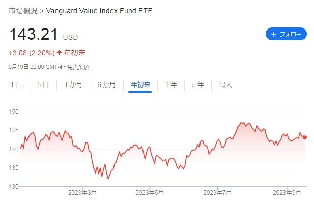 そして最後に紹介するのは、VTVです。まぁ、これも持っている人はあまりいないでしょうが、私の推し銘柄です。保有銘柄でもあります。バリュー株です。