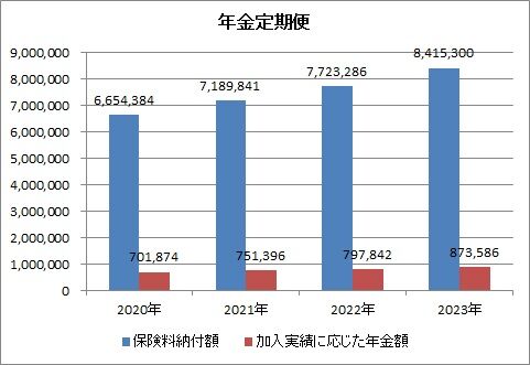 記録を残しているこの2020年からの推移を見ると、大体、納付額の1/10くらいが年金額になるんですかね。