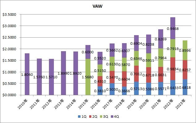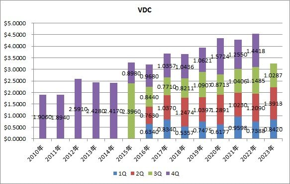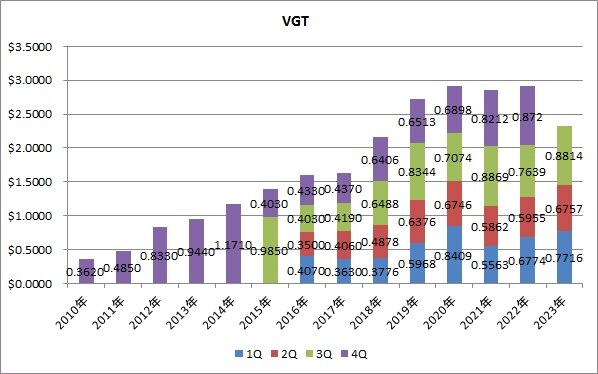 VFHは分配金の伸びも素晴らしいですし、美しい右肩上がり(若干波はあるものの)です。増配してくれるという安心感を与えてくれそうです。
