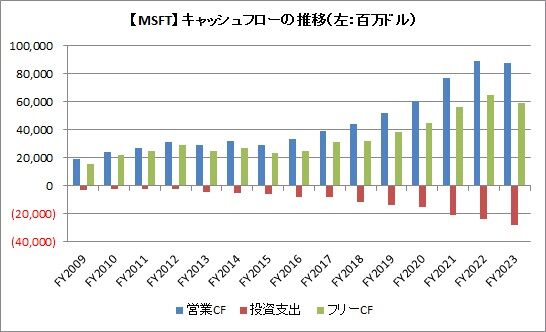 投資支出も増えてはいますが、基本的にはそれをも上回る営業キャッシュフローの増加により、フリーキャッシュフローが増えています。