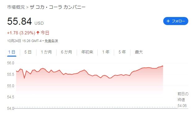 コカ・コーラは同+3.29%となっています。