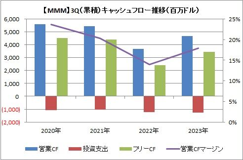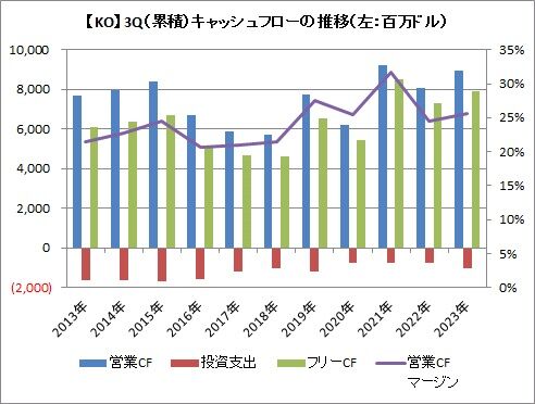1-9月期の営業キャッシュフローは46.94億ドル(前年同期比27.9%増)、投資支出は12.57億ドル(同1.1%増)、フリーキャッシュフローは34.37億ドル(同41.7%増)でした。