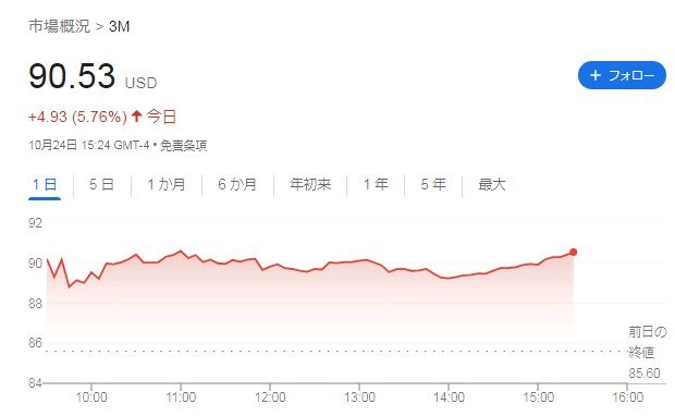 3Mは前日比+5.76%、