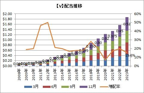 カード決済大手の米ビザ(V)が15.6%の増配を発表しました!