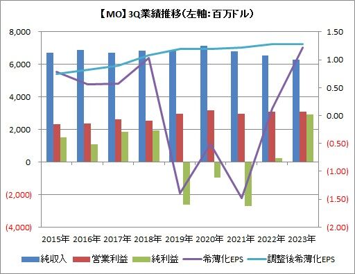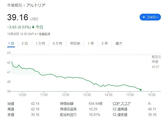 米アルトリア・グループ(MO)が7-9月期の決算を発表しました。内容はいまいちでした。