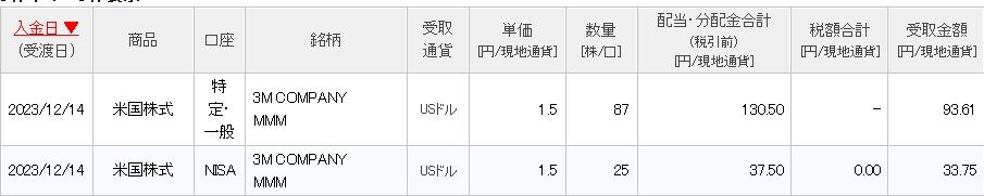 米3M(MMM)から今年最後の四半期配当を受け取りました。