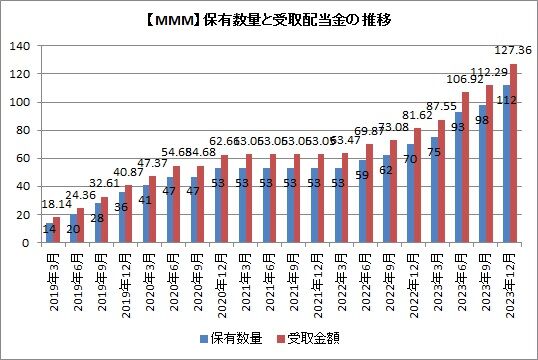MMMからの四半期配当の受取額は、ここ8四半期連続で増えています。