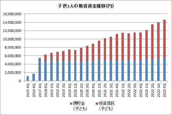 一応、この資産はこどもたちの教育資金として貯めてきた、積み立ててきたものです。推移としては以下の通りです。