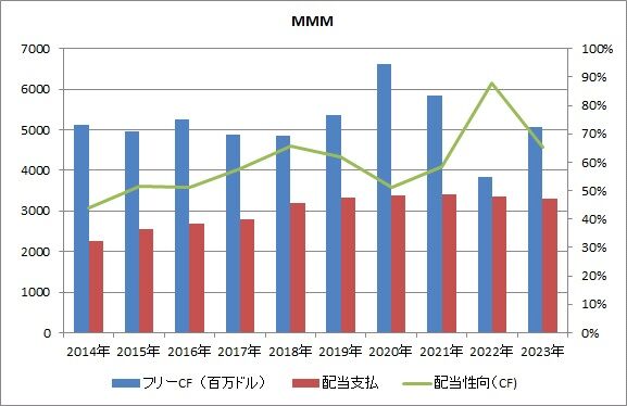 今回スピンオフするヘルスケア部門(新会社名はソルベンタム)は、2022年に84億ドルの売上高があり、2023年も82億ドルの売上高がありました。3M全体の25%を占めています。