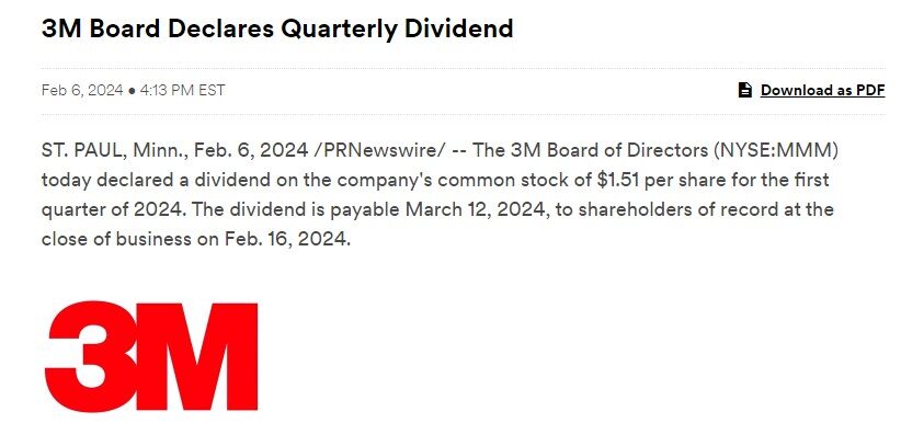ダメよ、3M Board Increases Quarterly Dividendって書いてくんないと、、。