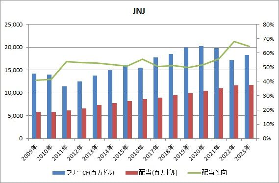 あり得るのは、自社株買いです。ジョンソン&ジョンソンは昨年50億ドル分の自社株買いを実施していて、市場に出回る平均普通株数が2022年の26.63億株⇒2023年25.60億株に3.9%減少しています。