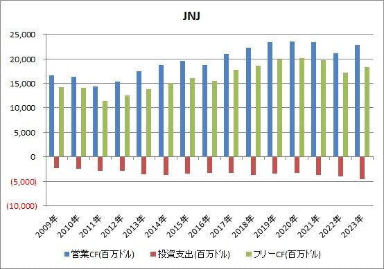 ジョンソン&ジョンソンの2023年のキャッシュフローは以下の通りでした。