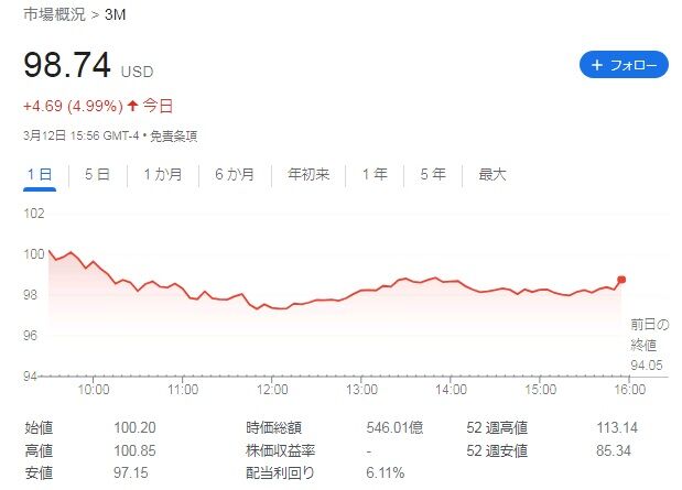 さて12日の米国株では3M(MMM)の株価が大幅反発しました。