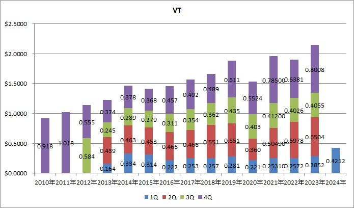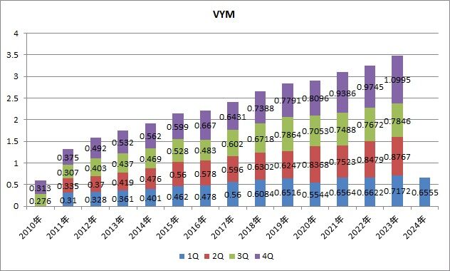 こちらも第1四半期は年間分配金を決める要素としては弱いですね。VT同様に第2と第4四半期でどうなるかです。