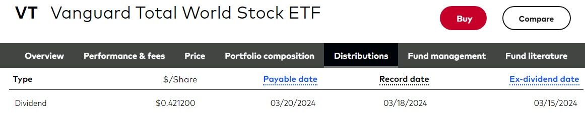 昨日発表されたのはVYM、VT、VXUSです。いずれも支払日は3月20日、権利落ち日は3月15日となっています。