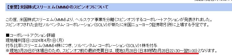 いや、確かにその通りなんだとは思うのですが、この書き方だと、この時点に3M株を持っていると、SOLVが一般口座に付与され得るようにも読めます。
