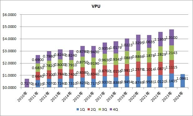 分配金は1.259ドルで、前年同期比63.2%増配でした。1Qの平均増配率は13.4%でした。